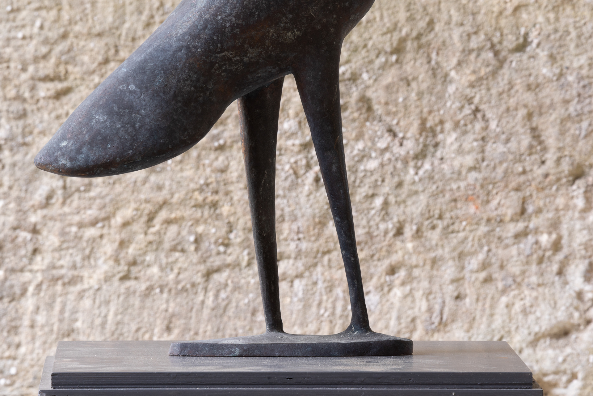 Vordergrund: »Kleiner wiehernder Hengst« von Prof. Gerhard Marcks; Hintergrund: »Stehender langbeiniger Vogel, VII.« von Heinz Theuerjahr